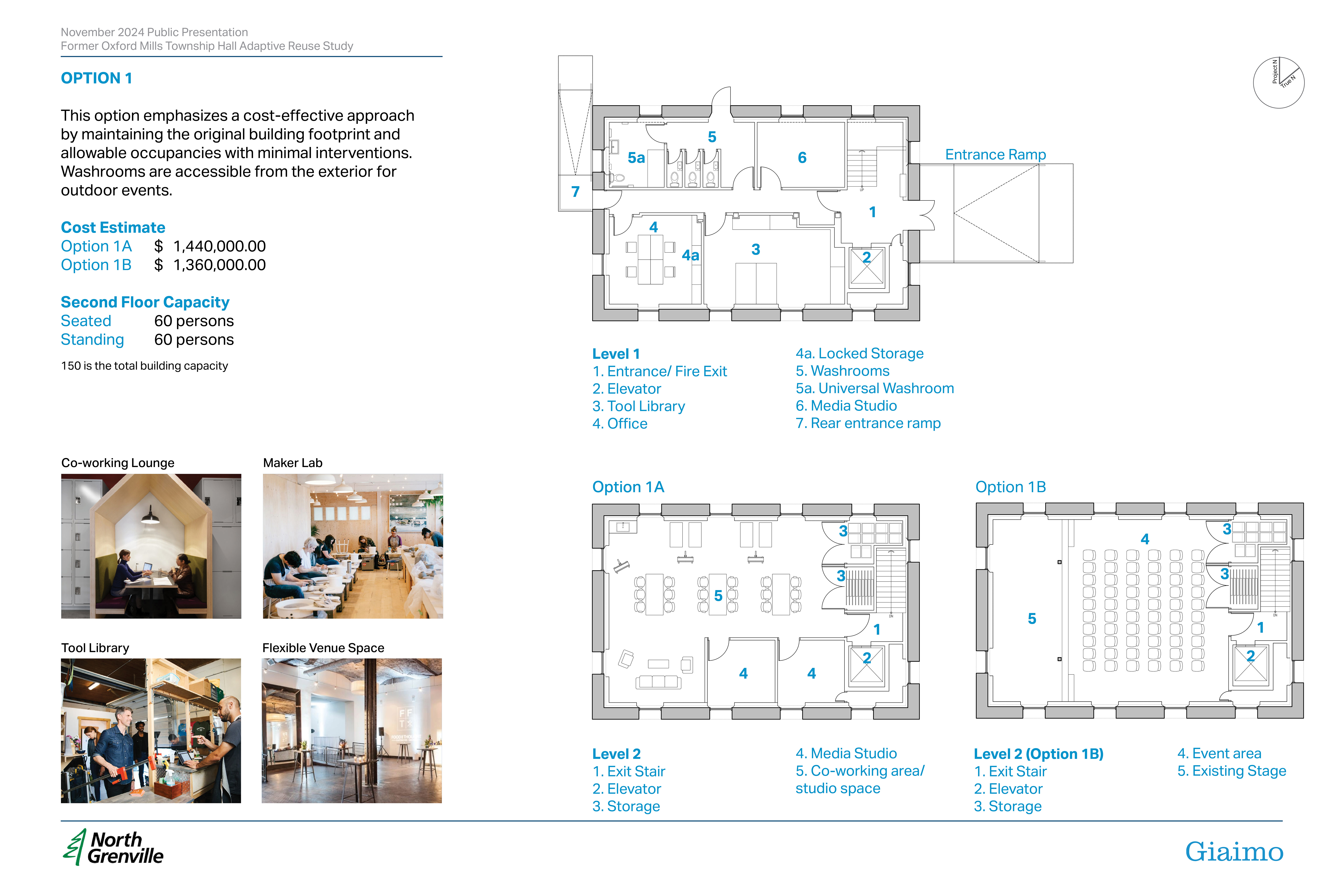 The Municipality of North Grenville is exploring potential future uses of the former Oxford Mills Township Hall (100 Maplewood Ave, Oxford Mills) as a public facility. Giaimo, architects and heritage consultants, have been engaged by the Municipality to undertake community consultation and develop three conceptual design options for the adaptive reuse. While each option offers different programming, capacity, and costing, all options will be flexible spaces that include the following key components: