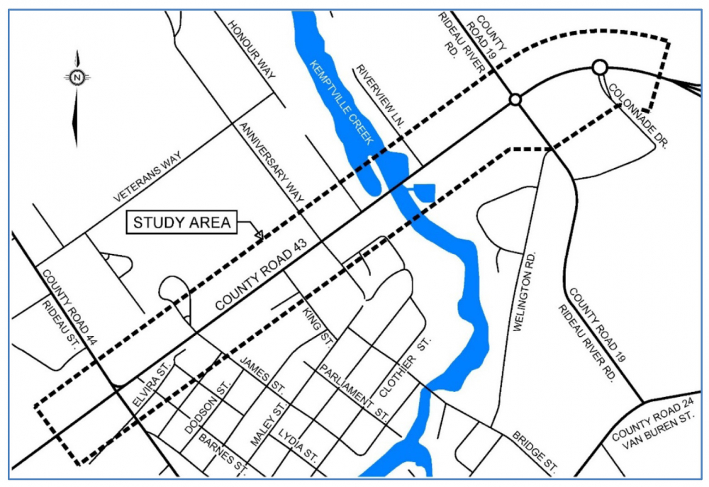 United Counties of Leeds and Grenville County Road 43 Widening from 200m west of County Road 44 to 220m east of Colonnade Drive in Kemptville. Revisions and Addenda to Environmental Study Report. Notice of Filing of Addendum. Download PDF here.