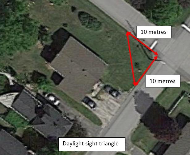 - Owners of corner lots must also be aware of the “daylight triangle” to ensure proper line of sight is maintained at intersecting streets. See photo sample here.